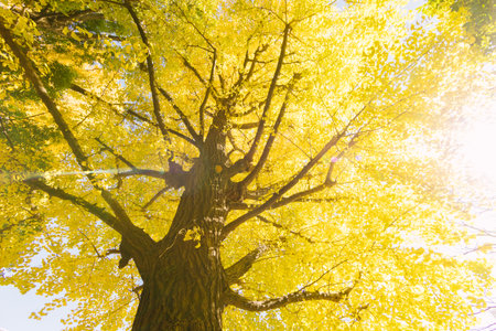 Ginkgo, Yellow leaves of ginkgo tree in the city with nice blue sky, Japan