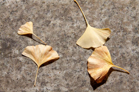 Ginkgo leaves on the ground in autumn, close-up