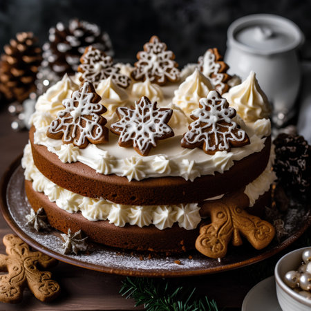 AI Generated. Festively Decorated Gingerbread Cake with Holiday Cheer