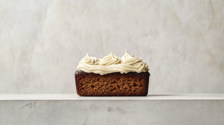 A beautifully crafted loaf cake topped with creamy frosting, ideal for any occasion. This dessert embodies both flavor and aesthetic appeal, inviting indulgence.