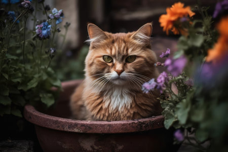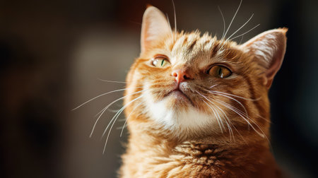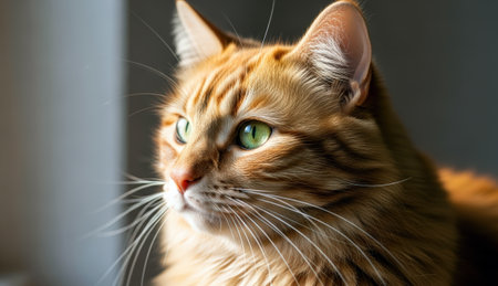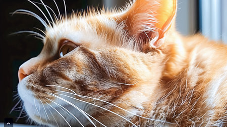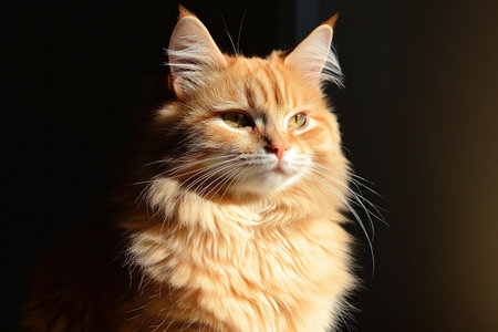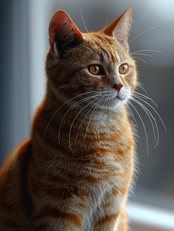 AI Generated. Ginger cat sitting near red wall looking away