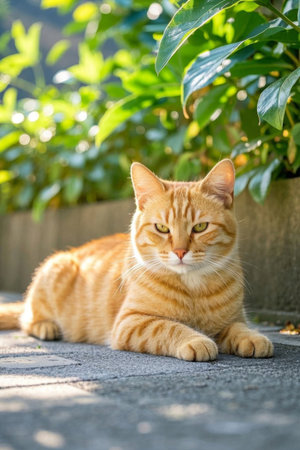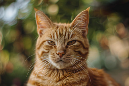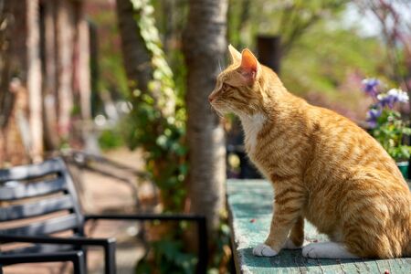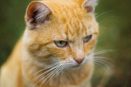 Portrait of a ginger cat in the garden. Selective focus.