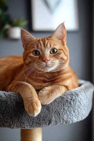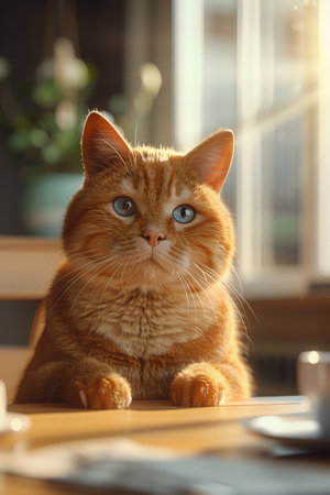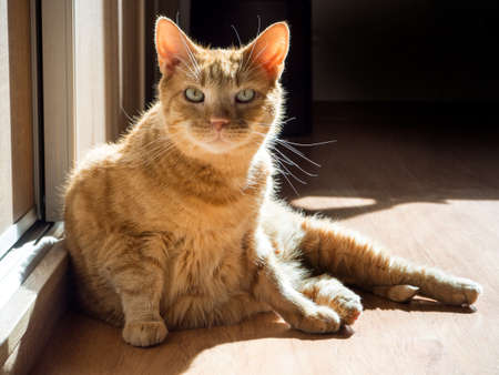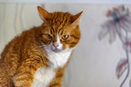 Orange pet cat sitting indoors