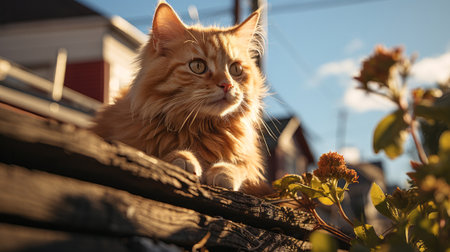 cat perched on a tree branch, observing its surroundings, created with generative ai