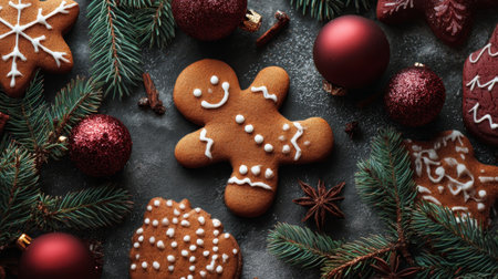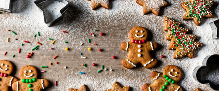 Festive Gingerbread Cookies with Christmas Decorations and Sprinkles