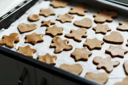 Gingerbread in the owen. Christmas time at home.