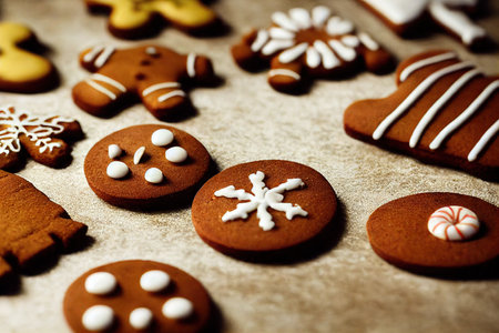 gingerbread cookies arranged in a festive pattern, created with generative ai