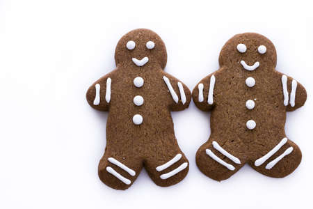 Two gingerbread men on a white background