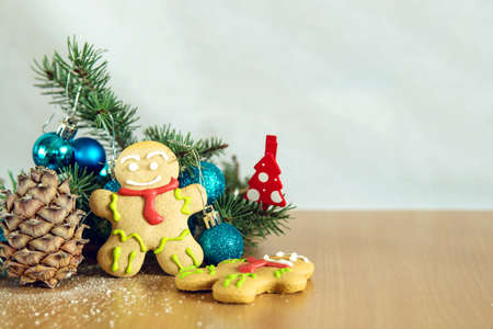 christmas decoration with gingerbread and fir branch