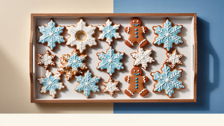 Beautifully decorated cookies in various shapes ready for a festive celebration during winter festivities