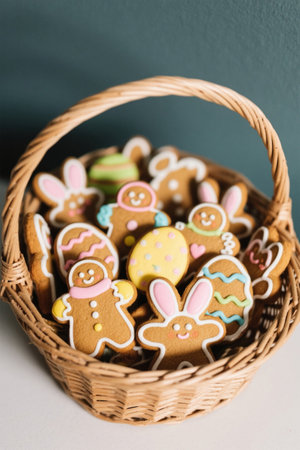 Close up of the decorated cookies in the basket