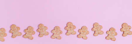 Christmas gingerbread cookies on pink background.