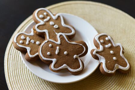 Delicious gingerbread men and other shapes are waiting to be eaten during Christmas holidays