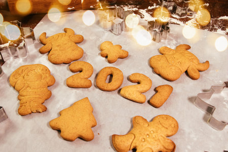 Christmas homemade gingerbread cookies on table