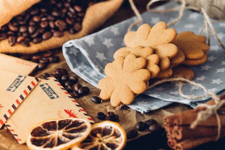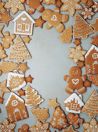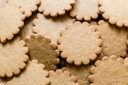 Yummy Ginger cookies, traditional Christmas treat. Gingerbread background.