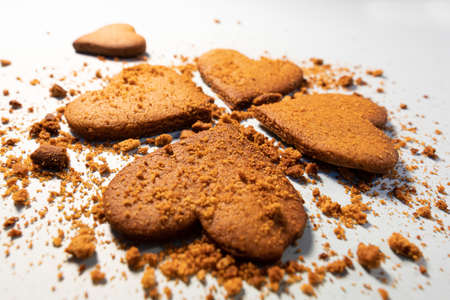 Homemade chocolate hearth shaped cookies and butter cookie on white background