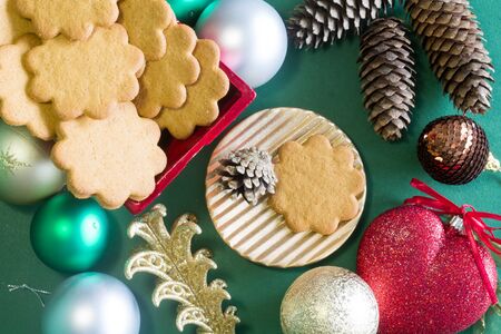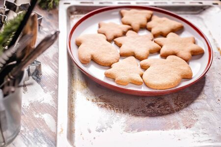 Christmas homemade cookies on a plate. Traditional treat for Christmas and New Year