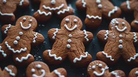 Gingerbread Men Cookies on Dark Background, Festive Christmas Treats, Homemade Holiday Baking