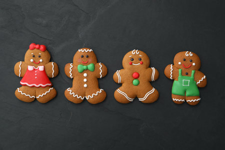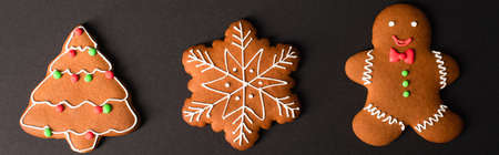 Gingerbread cookies on a dark background. Christmas and New Year concept.