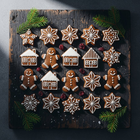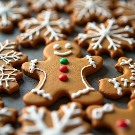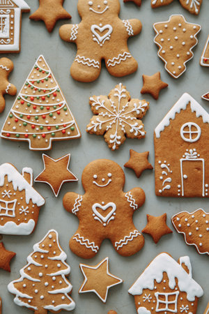 Festive gingerbread cookies with icing for holiday celebrations and baking inspiration
