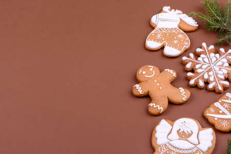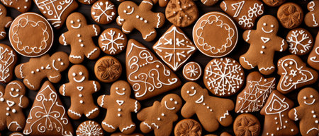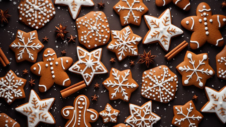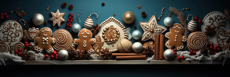 Christmas gingerbread, cookies, or baked goods for the winter holidays. Christmas gingerbread as a backdrop for your design