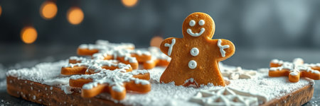 Gingerbread cookies arranged in a festive scene for Christmas celebration