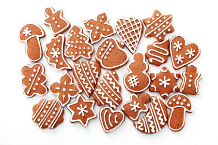 gingerbread cookies on white background - sweet food