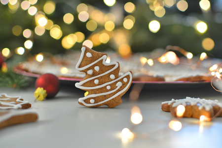 Homemade ginger cookies on the table, symbol of New Year, Christmas