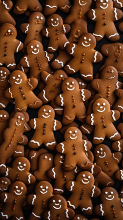 close up of many gingerbread men cookies, top view, seamless pattern