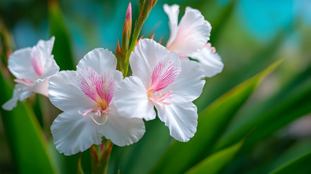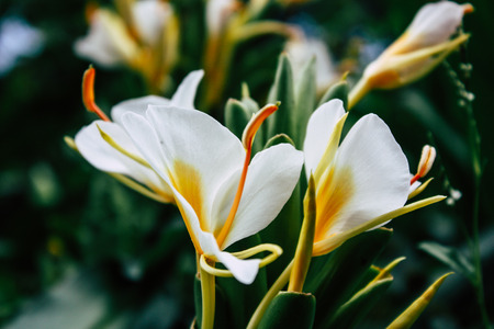 Delicate White Ginger Lily Blossoms with Pink Accents in Lush Garden