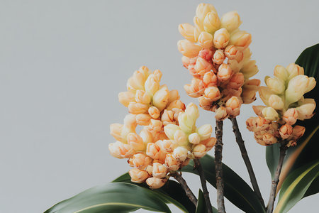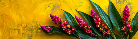 Exotic Ginger Flower and Root on Vibrant Green Leaf Background