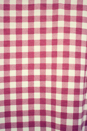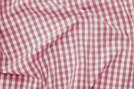 Traditional white and red kitchen chekered towel rustic style for a picnic or tablecloth with tartan pattern. Gingham crampled texture for table napkin