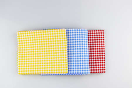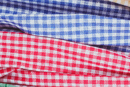 Multi colored checkered fabric, kitchen towels. Woven fiber fabric.