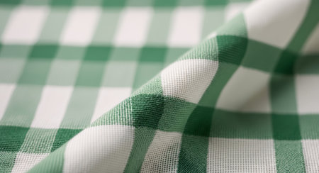 AI Generated. Green and White Checkered Fabric Close Up