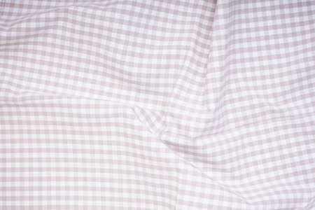 White checkered fabric as a background, closeup of photo