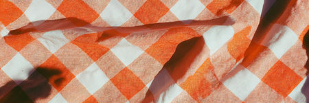 Close-up of orange and white checkerboard patterned fabric with textured surface. That the image is generated using AI.