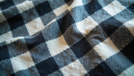 Fabric texture, close up of a black and white checkered plaid towel or napkin pattern background, pattern for design or any use top view, macro