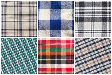 Multi colored checkered fabric, kitchen towels. Woven fiber fabric.
