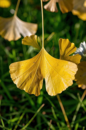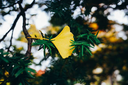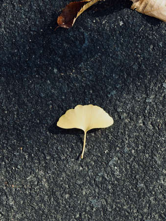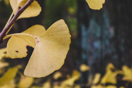 Yellowish Japanese Ginkgo Biloba leaf in autumn. (Selective focus)