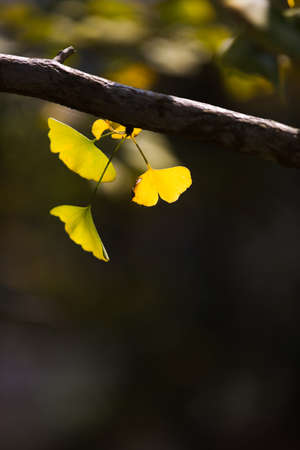 Yellow Ginkgo Biloba Leaf golden color in autumn fall season