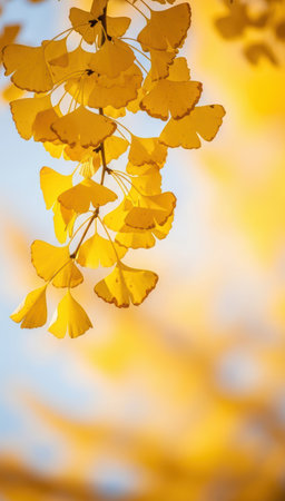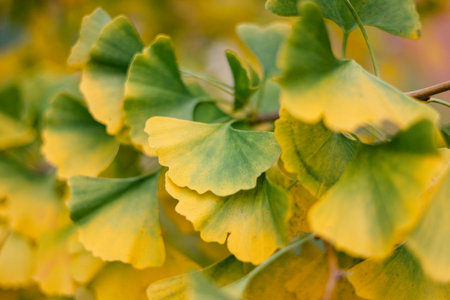 Ginkgo leaves display beautiful shades of yellow and green during autumn in a peaceful natural environment.
