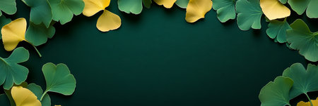Crisp Green and Yellow Ginkgo Leaves Border on Emerald Green, Botanical Background, Nature Design