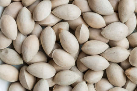 Many yellow pistachio nuts and shells texture pattern in Bremerhaven Germany.