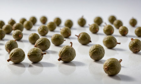 A top-down view of a verdant pea isolated on a ethereal surface.