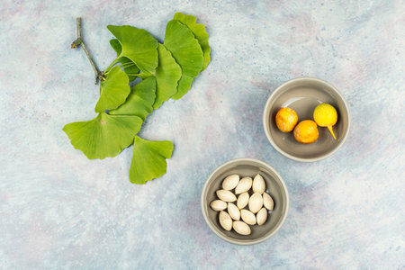 Alternative medicine and homeopathy, ginkgo biloba extract. Natural remedy. Copy space. Space for text.