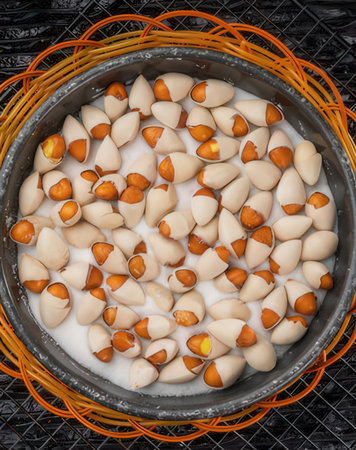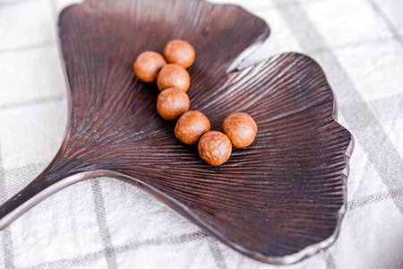 Ginkgo biloba seed in Thai food market, Ginkgo seeds background