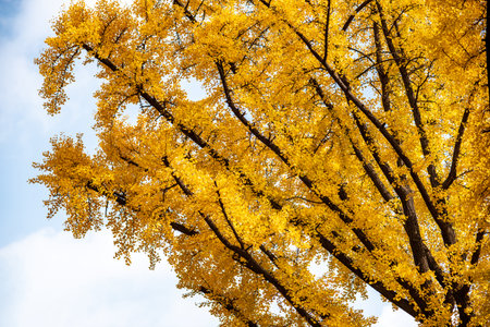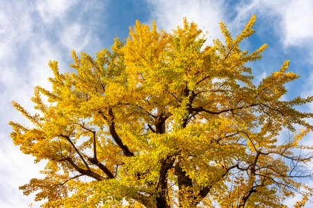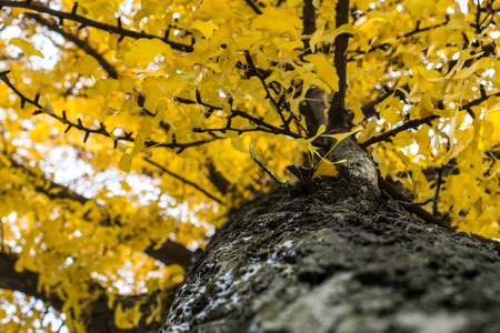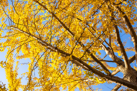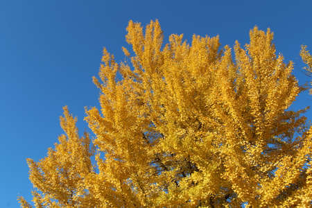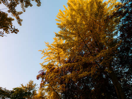 Yellow Ginkgo biloba in clear weather in late autumn