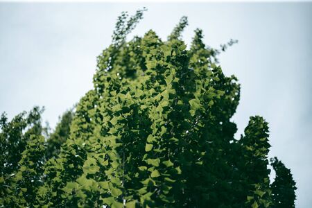 Ginkgo biloba green leaves on the tree. Ginkgo biloba tree leaves with sunbeams. healing. herbal medicine