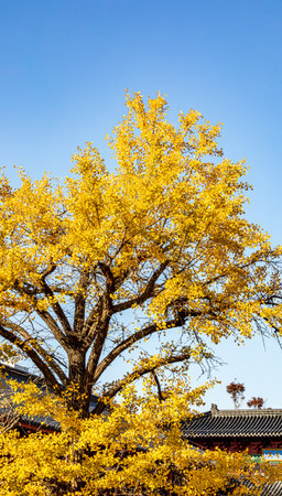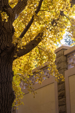 Ginkgo tree with autumn leaves at the Forbidden City, Beijing, China