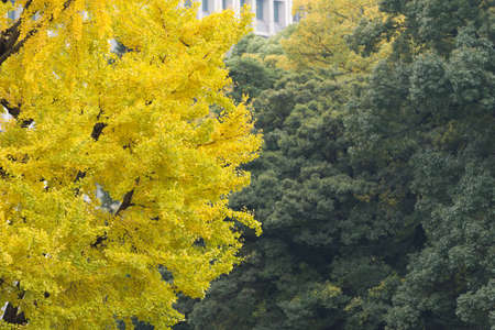 Ginkgo leaves, Japanese autumn landscape.
